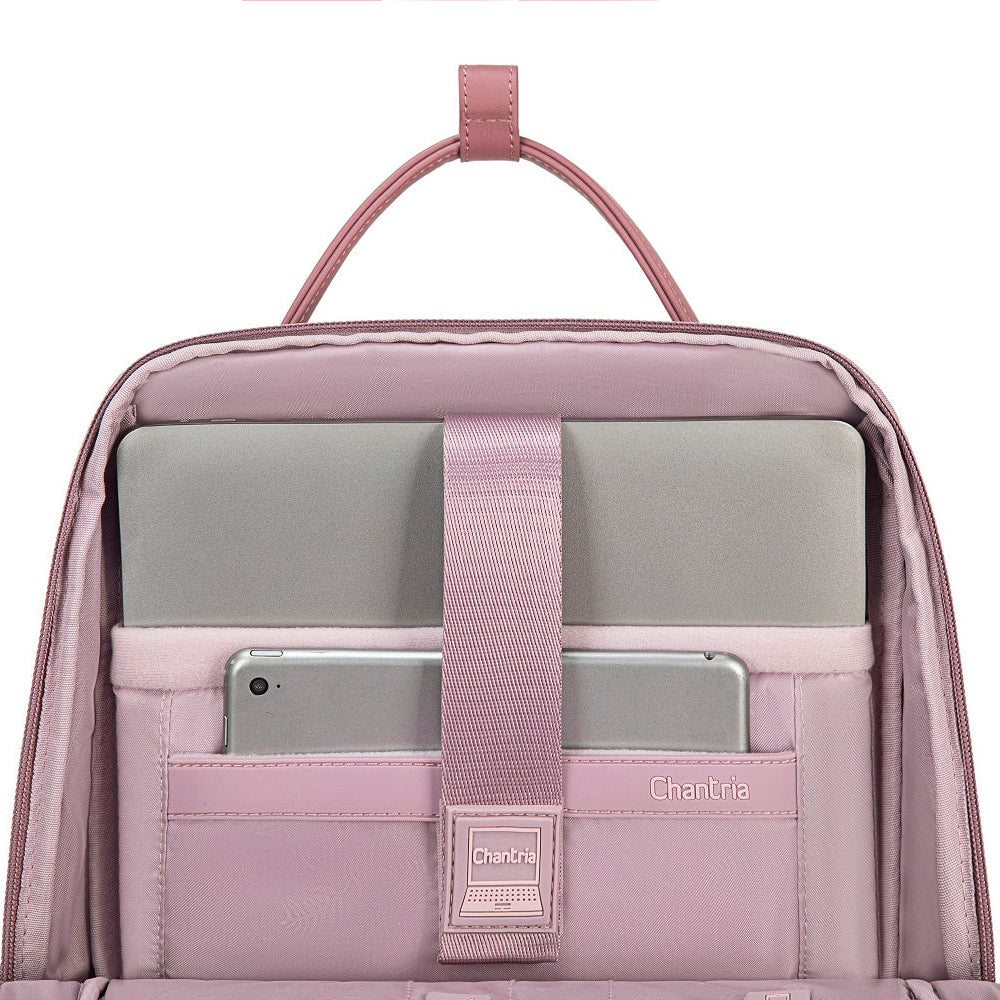 Der Chantria Damen Rucksack überzeugt mit seinem eleganten Design und hochwertigen, wasserabweisenden Materialien und ist perfekt für den Alltag, Reisen oder den Arbeitsweg. Er bietet viel Stauraum mit einem Slip Pocket, einer Frontreißverschlusstasche, gepolsterten Hauptfach für Laptops oder Tablets und viel mehr. Die ergonomischen Schultergurte und die zusätzliche Rückengurt-Befestigung sorgen für hohen Tragekomfort. Das robuste Material schützt den Inhalt zuverlässig vor Regen und Feuchtigkeit und macht den Rucksack zu einem stilvollen und funktionalen Begleiter für moderne Frauen.